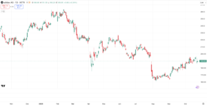 In de onderstaande grafiek is het koersverloop van Adidas weergegeven: