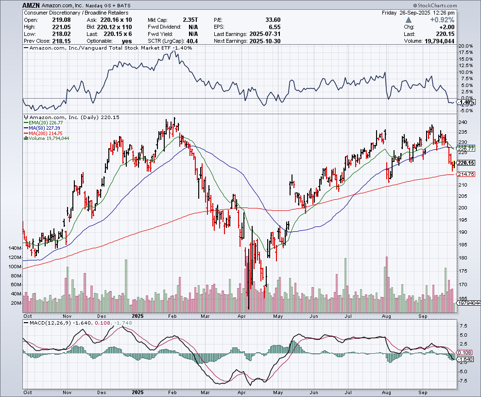 In de onderstaande grafiek zien we het koersverloop van Amazon:
