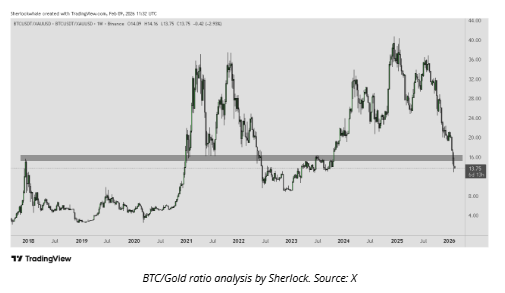 Daarnaast kan de BTC/Gold-ratio wijzen op een mogelijke verdere terugval naar $38.000–$40.000 als het patroon uit het verleden zich herhaalt.