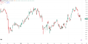 In de onderstaande grafiek is het koersverloop van AstraZeneca weergegeven: