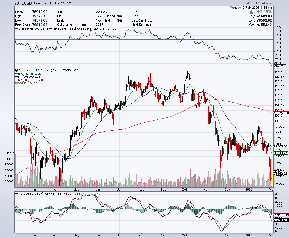 Bitcoin zakte zaterdag onder $80.000, de eerste keer sinds april 2025, na grootschalige uitstroom uit Amerikaanse spot-Bitcoin-ETFs. In januari trokken beleggers ongeveer $1,6 miljard terug, het derde slechtste maandresultaat ooit voor deze producten. De uitstroom valt samen met onzekerheid over Fed-beleid en geopolitieke spanningen, wat de verkoopdruk versterkte.