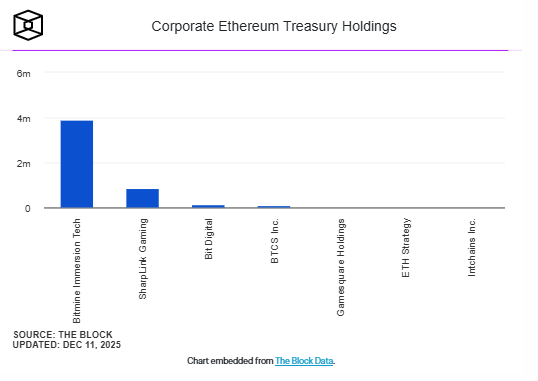 BitMine bevestigde de transactie zelf nog niet, maar koopt al het hele jaar door grote hoeveelheden ETH. Volgens het meest recente 8-K-document beschikte het bedrijf op 7 december over 3.864.951 ETH.