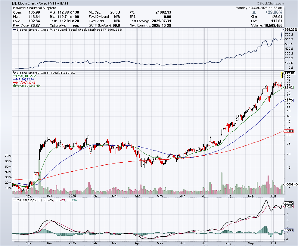 Bloom Energy aandelen stegen maandag met meer dan 20% na een deal met Brookfield Asset Management om brandstofcellen in AI-datacenters te installeren. Brookfield investeert tot $5 miljard om wereldwijd “AI-fabrieken” te bouwen die snel en betrouwbaar van stroom worden voorzien. De off-grid brandstofcellen verminderen de afhankelijkheid van het verouderde elektriciteitsnet en ondersteunen de groeiende energiebehoefte van AI-datacenters.