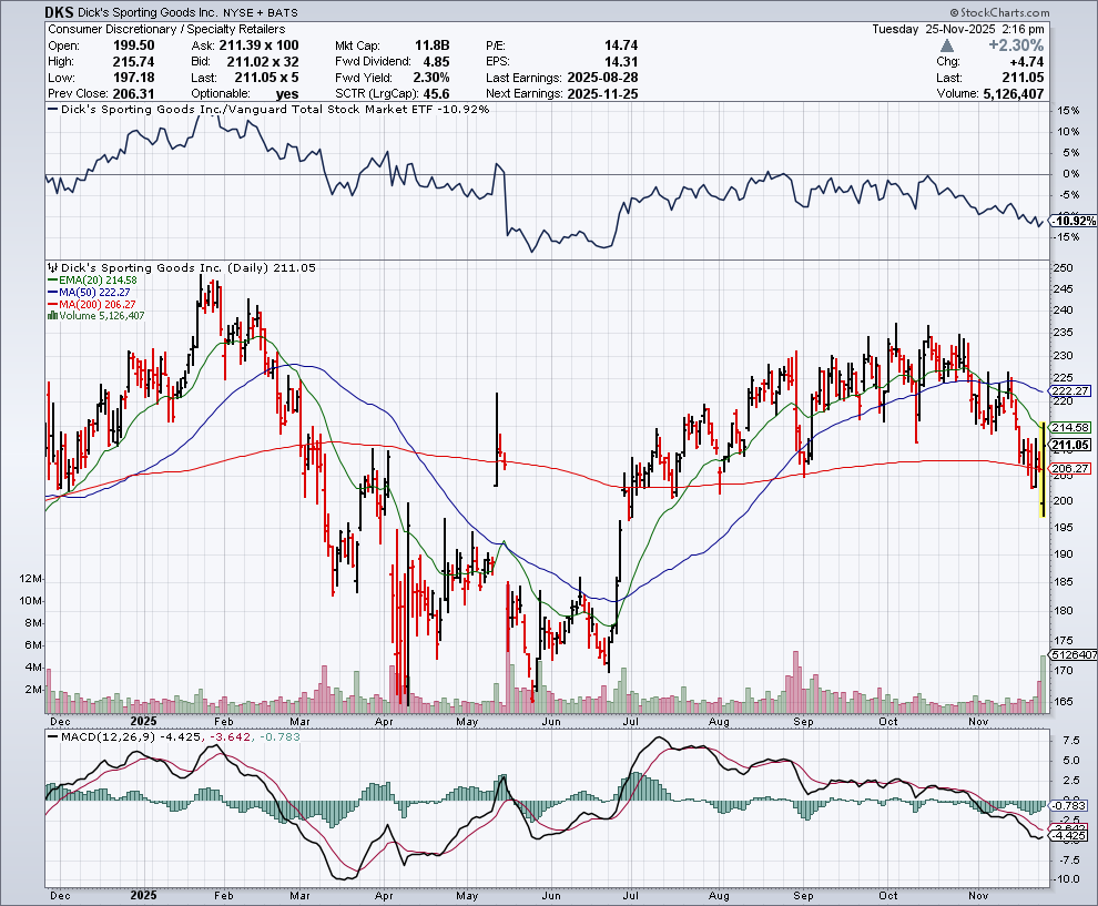 Voor het eigen merk verwacht Dick’s nu comparable sales tussen 3,5% en 4%, iets hoger dan eerder geraamd. Voor het hele jaar wordt de winst per aandeel geschat tussen $14,25 en $14,55, in lijn met de verwachtingen van $14,44.