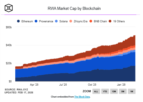 De marktwaarde van tokenized real-world assets (RWA’s) op Ethereum is gestegen tot meer dan $17 miljard, een toename van ruim 300% op jaarbasis. Deze groei wordt gedreven door toenemende adoptie van blockchain door grote financiële instellingen. Ethereum vertegenwoordigt nu ongeveer 34% van de totale tokenized RWA-markt.