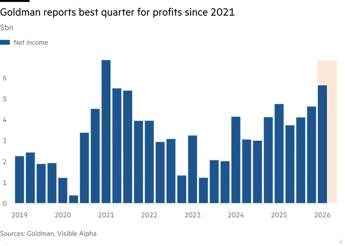 Goldman Sachs heeft in het eerste kwartaal van 2026 beter dan verwachte resultaten geboekt, maar zag de stemming op de beurs verslechteren door een sterke terugval in de obligatie-activiteiten. De bank profiteerde van uitzonderlijk sterke aandelenhandel en hogere investment banking-inkomsten, maar fixed income presteerde duidelijk onder verwachting. Het resultaat benadrukt de afhankelijkheid van marktschommelingen binnen de tradingactiviteiten.
