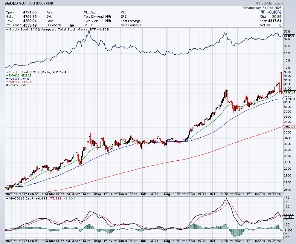 Goud is tot nu toe dit jaar meer dan 64% gestegen en staat op koers voor zijn beste jaar sinds 1979. Het metaal profiteerde van Amerikaanse renteverlagingen, handelsconflicten en sterke vraag van ETF’s en centrale banken.
