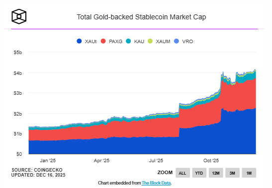 De sterke prestaties van goud, met een stijging van 66% in 2025, stimuleren de instroom in deze blockchain-gebaseerde producten.