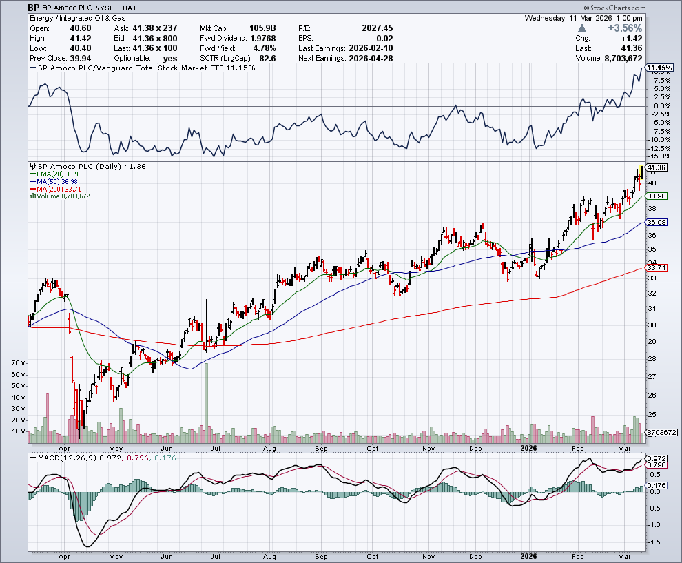 In de onderstaande grafiek zien we het koersverloop van BP:
