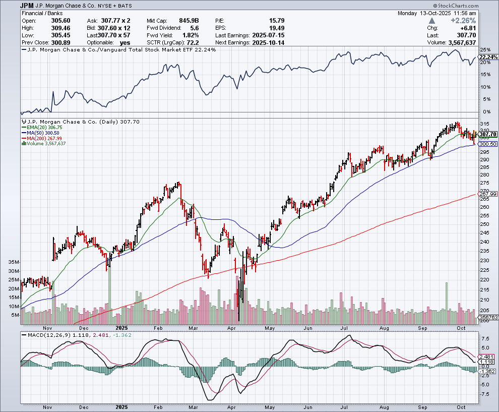 In de onderstaande grafiek zien we het koersverloop van JPMorgan, dat licht hoger sprong door de aankondiging: