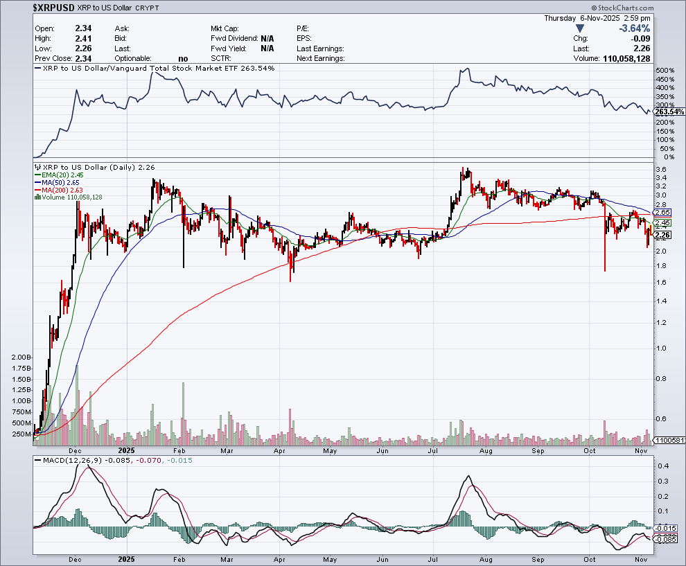 In de onderstaande grafiek zien we het koersverloop van XRP: