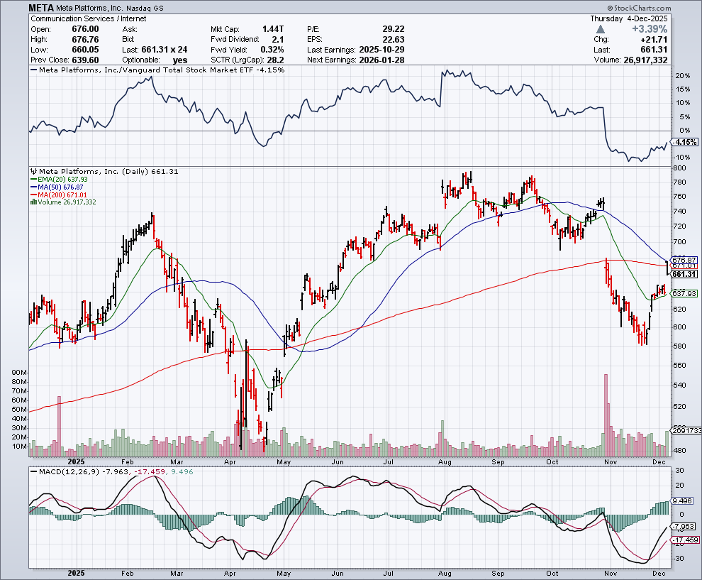 In de onderstaande grafiek zien we het koersverloop van Meta: