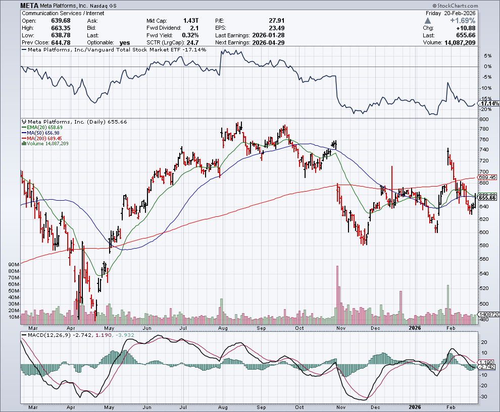 In de onderstaande grafiek zien we het koersverloop van Meta: