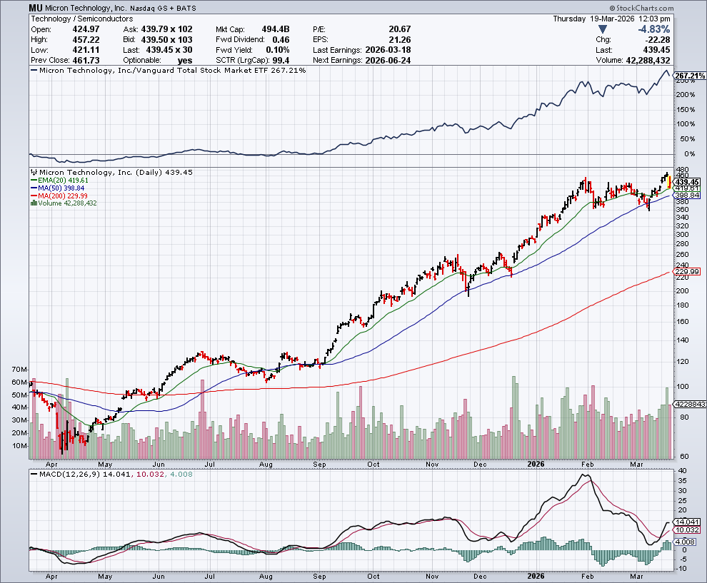 Micron Technology zag de aandelen donderdag voor beursopening met meer dan 4% dalen, ondanks een kwartaalrapport dat profiteerde van de groeiende vraag naar AI-geheugen. Beleggers werden ongerust door de plannen van de chipmaker om de kapitaalinvesteringen fors op te voeren.