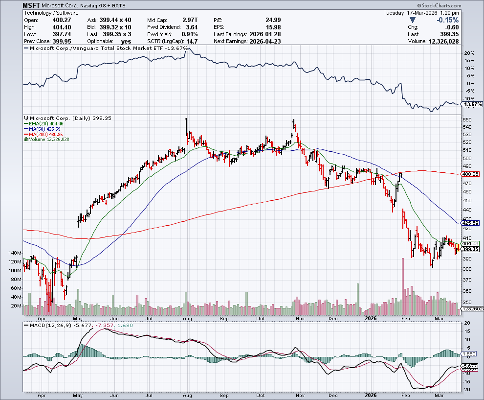 In de onderstaande grafiek zien we het koersverloop van Microsoft: