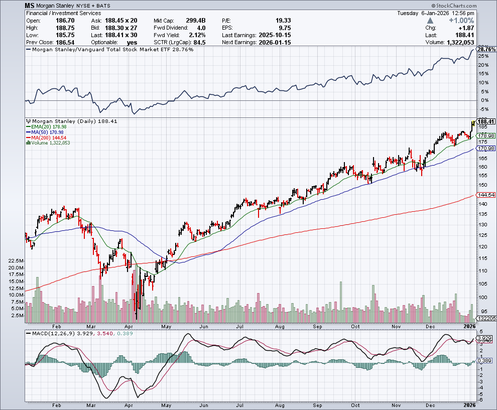 In de onderstaande grafiek zien we het koersverloop van MS: