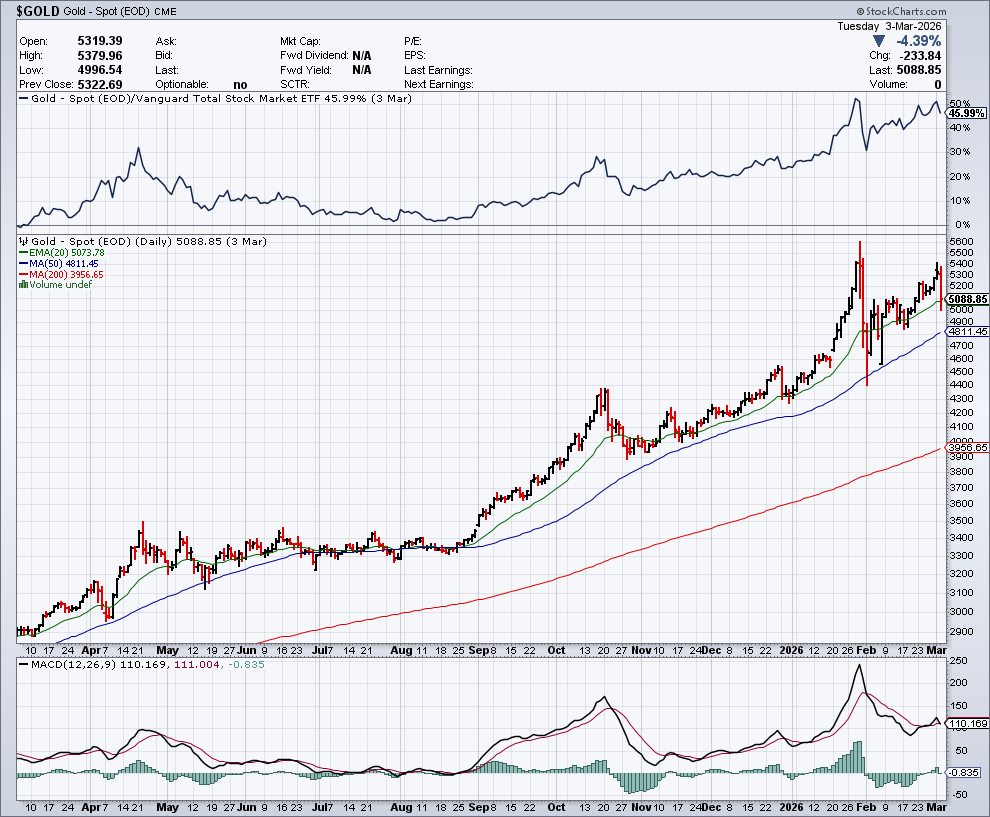Goudprijzen zijn deze week met ongeveer 3% gedaald tot circa $5.100 per troy ounce. Wel liggen ze nog steeds bijna 20% hoger dan aan het begin van het jaar.