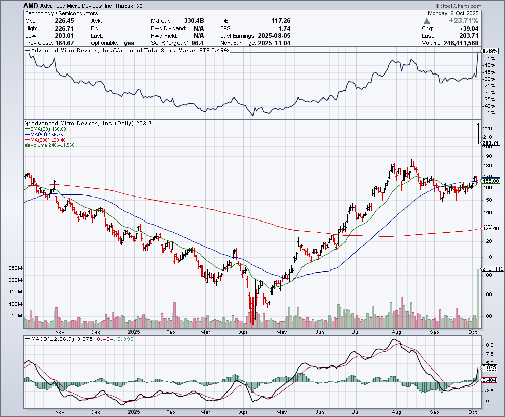 OpenAI heeft een miljardenovereenkomst gesloten met AMD om tot 6 gigawatt aan AI-chips af te nemen, wat kan leiden tot een 10% belang in het chipbedrijf. De deal moet OpenAI’s positie in de ontwikkeling van AI-infrastructuur versterken en de groei van ChatGPT ondersteunen. AMD verwacht dat de overeenkomst tientallen miljarden dollars aan omzet oplevert en strategische waarde creëert voor beide partijen.
