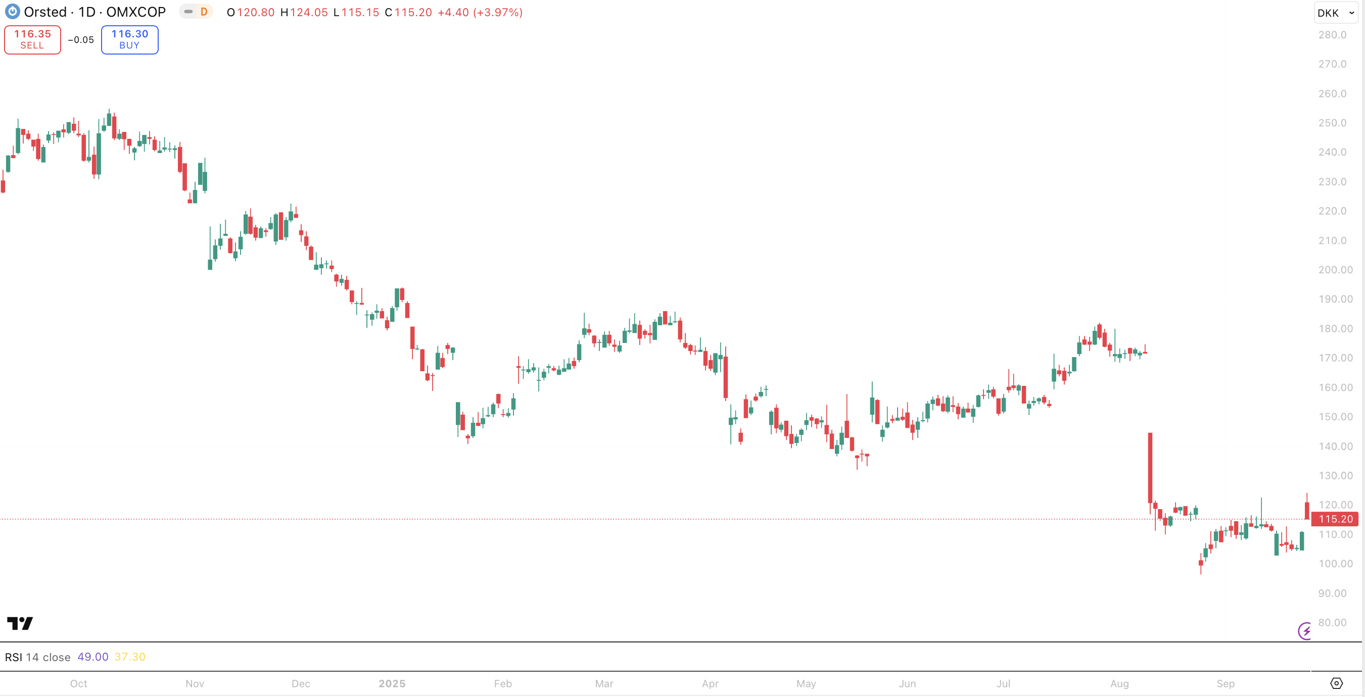 In de onderstaande grafiek is het koersverloop van Orsted weergegeven: