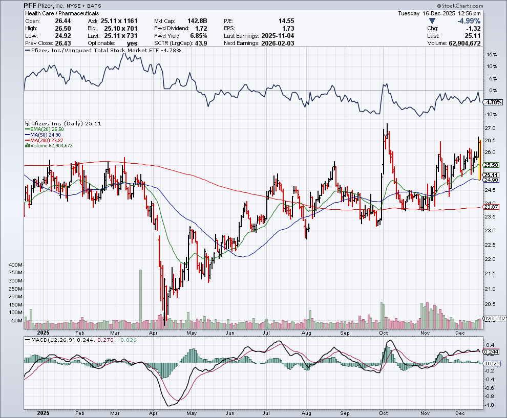 Pfizer verwacht voor 2026 een winst van $2,80–$3 per aandeel en een omzet van $59,5–$62,5 miljard. Dalende verkopen van Covid-producten en verlies van exclusiviteit bij oudere medicijnen drukken de groei. Tegelijkertijd investeert het bedrijf in nieuwe medicijnen en voert het kostenbesparingen door om de impact te beperken.