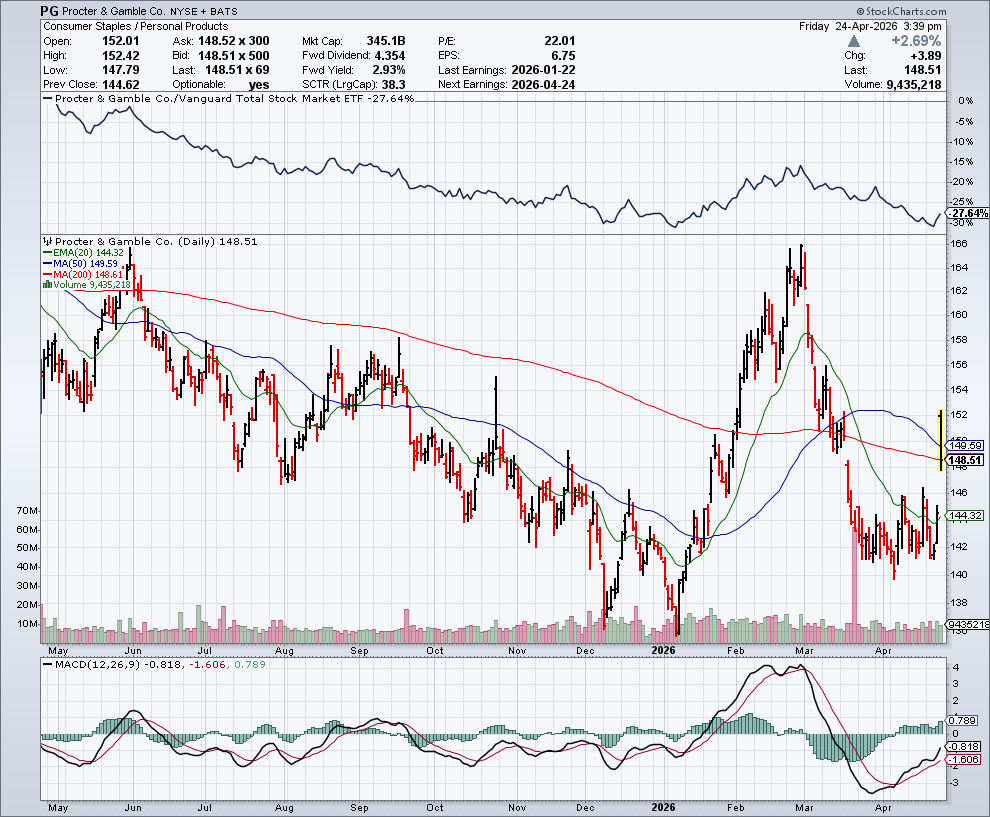 In de onderstaande grafiek zien we het koersverloop van Procter & Gamble: