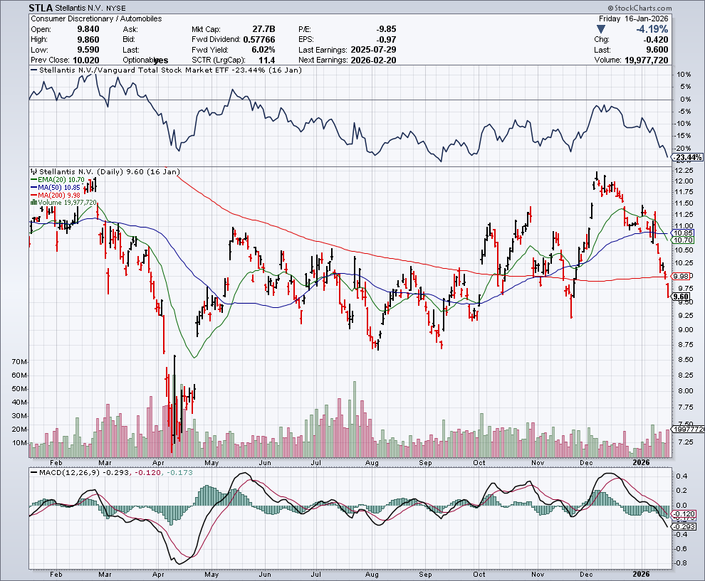 In de onderstaande grafiek zien we het koersverloop van Stellantis: