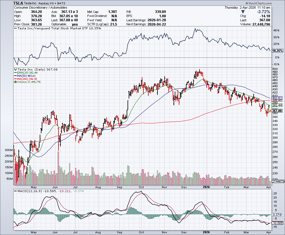 Tesla rapporteerde in het eerste kwartaal van 2026 een zwakkere groei van de wereldwijde voertuigleveringen dan verwacht, ondanks een herstel van de verkopen in Europa dankzij goedkopere modellen en kortingen. Het Amerikaanse autobedrijf leverde 358.023 voertuigen af, een stijging van 6% ten opzichte van dezelfde periode vorig jaar, maar lager dan de door analisten voorspelde 365.000. Het aandeel reageerde negatief en daalde 4% in de pre-market handel.