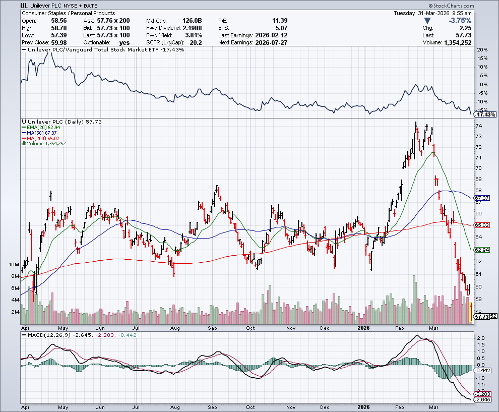 In de onderstaande grafiek zien we het koersverloop van Unilever: