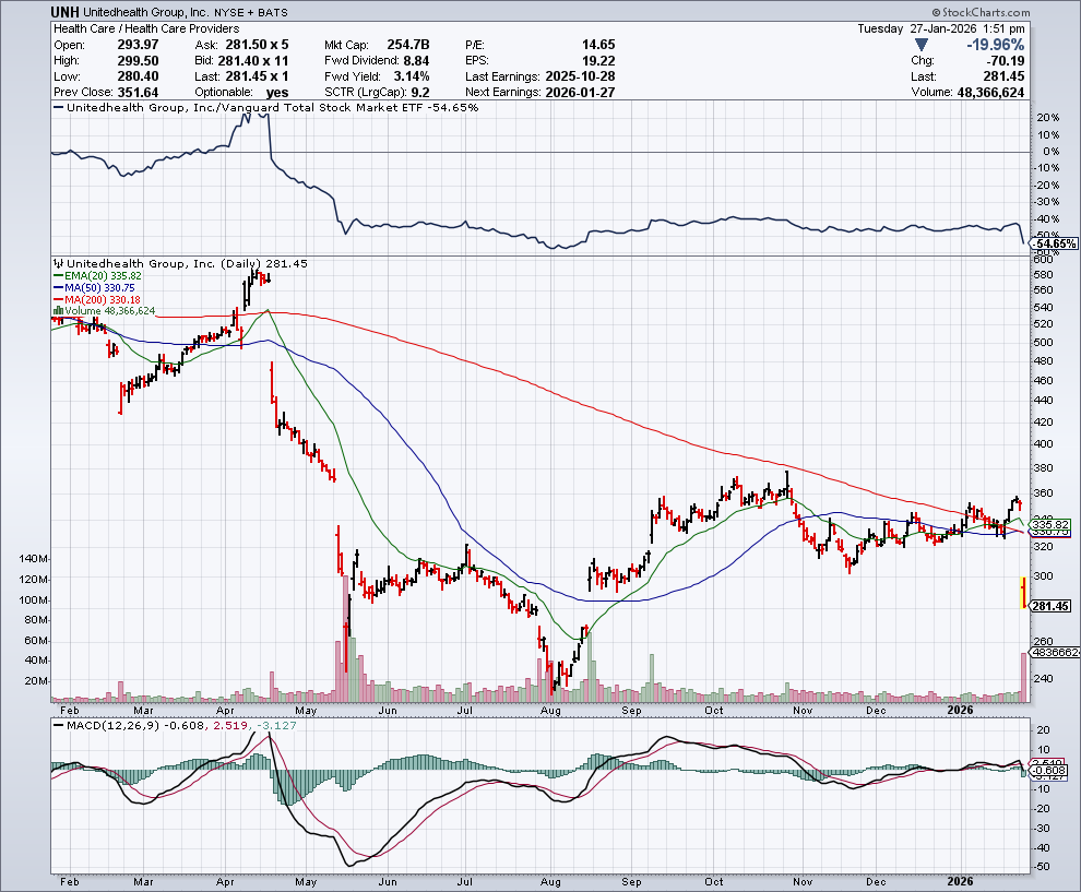 In het vierde kwartaal behaalde UnitedHealth een aangepaste winst per aandeel van $2,11, net boven de $2,10 die analisten verwachtten. De totale omzet bedroeg $113,2 miljard, iets lager dan de voorspelde $113,82 miljard.